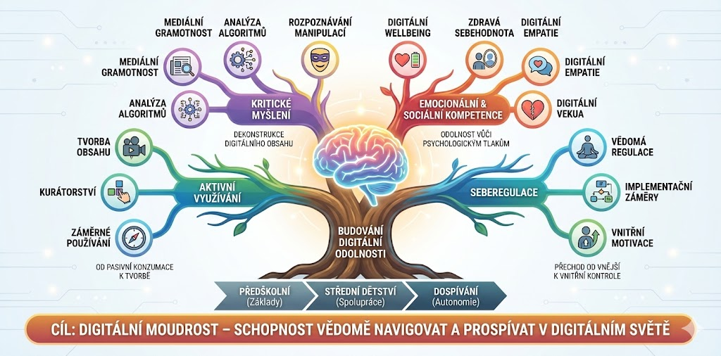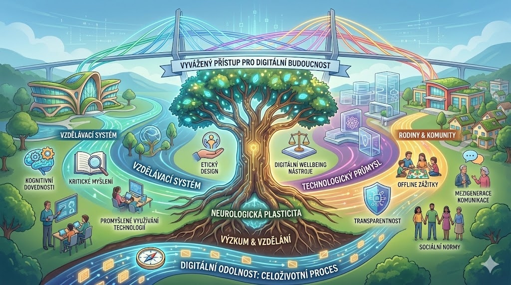 Digitální odolnost není o odmítání technologií, ale o kultivaci kognitivních, emocionálních a sociálních dovedností, které umožní dětem kriticky navigovat digitálním prostředím a využívat jeho potenciál, aniž by byly pasivně formovány jeho algoritmy.